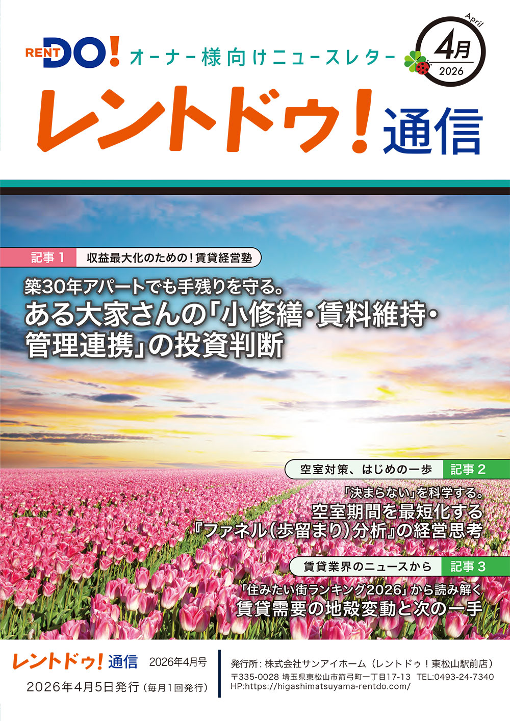 賃貸オーナー様にお送りしているレントドゥ!通信4月号を更新しました。